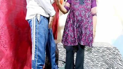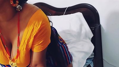 scorching Indian step mother drilling with her step nephew step son-in-law front of her hubby