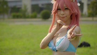 super hot redheaded round japanese Sana Morikawa plays with a romp plaything in VR.